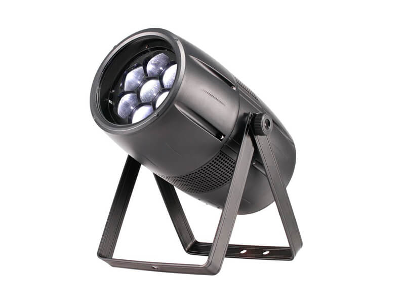这是一款配备 7 颗 40W 大功率四合一 LED 灯的大功率变焦 LED 帕灯。这种灯非常适合舞台、表演等娱乐场所。